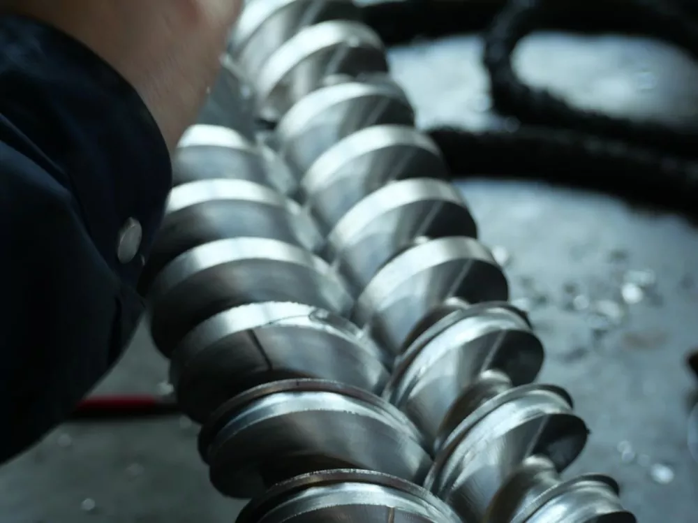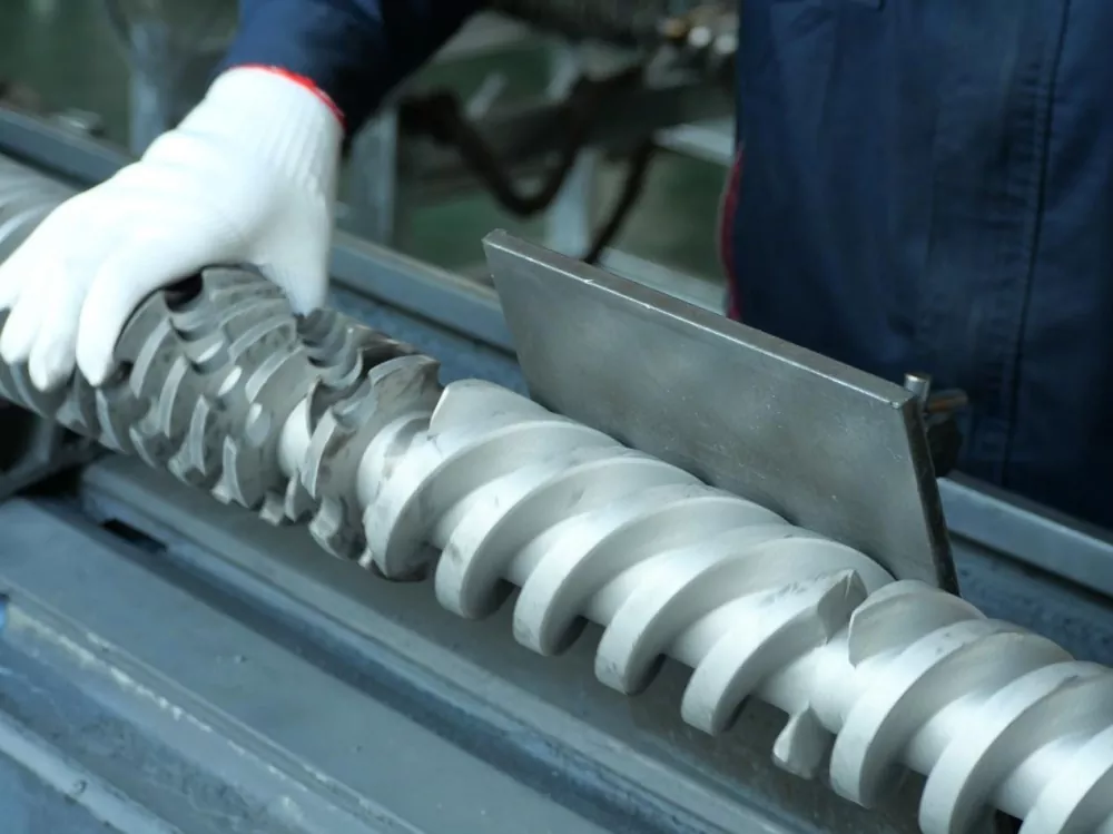 La selecció del material també és crucial. Els nostres cargols estan fets d'acer d'aliatge nitrurat 38CrMoALA d'alta qualitat. Aquest se sotmet a un tractament de templament i nitruració de set dies, donant lloc a una capa nitrurada de 0,50-0,70 mm de gruix i una duresa superficial de HV950-1050. Aquestes propietats del material garanteixen una excel·lent resistència al desgast fins i tot a temperatures d'uns 200 °C, allargant la vida útil del cargol en almenys una cinquena part en comparació amb els productes convencionals. Això evita l'acumulació de material a les cantonades mortes a causa del desgast de la superfície durant un ús prolongat.